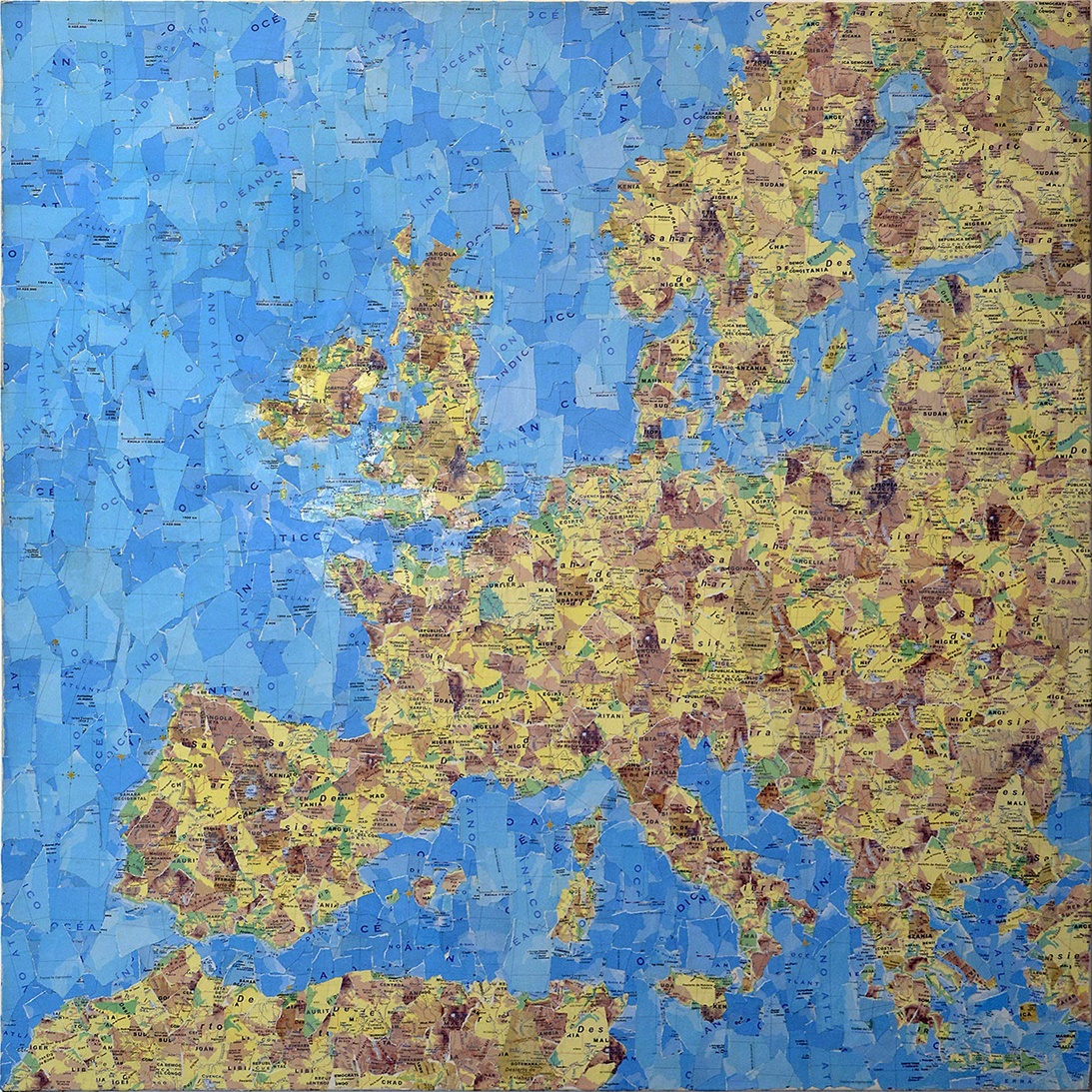 Firpo construye emblemas a partir de recortes de otras banderas, como también mediante la piratería estética poniendo en relieve el carácter histórico, coyuntural y performático [3] de los símbolos con los cuales hemos sido educados. Si dentro de la lógica de construcción de identidades compartidas –comunidades imaginadas en los términos de Anderson [4]– los Estados Nacionales han utilizado las banderas como símbolo inclusivo/excluyente y la moneda como referencia de autonomía económica y equivalencia respecto de otros Estados Nacionales, los mapas son otra importante herramienta para delimitar territorios. Las operaciones utilizadas históricamente incluyen la normalización del lenguaje mediante la educación, la prohibición, la censura y la propaganda de contenidos específicos que circulan entre los diferentes consumos culturales. La herética obra de Yaya Firpo se presenta potente y disruptiva no sólo por su clara intención de desbaratar las jerarquías de los países occidentales más poderosos respecto de sus colonias, sino porque tensa los elementos constitutivos de cualquier proceso de construcción estatal, desnudando la fragmentación al interior de cada comunidad. Sus mapas y banderas reconstituidos, intervenidos y des jerarquizados ponen en evidencia la vigencia de una retórica xenófoba y clasista que nos inunda, mientras nos recuerda que son eso: unos relatos, unas construcciones susceptibles y desmontables, habilitándonos -como sujetos del Estado y de los discursos- a una apropiación de sus sentidos para usarlos a nuestro favor.