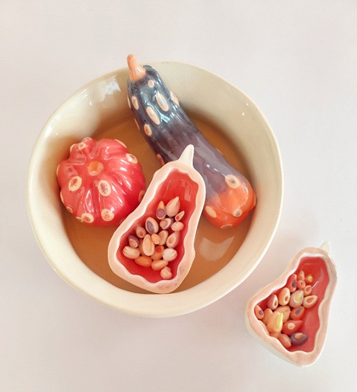 Frutera. Cerámica color bajo cubierta. 2024. Medidas variables.